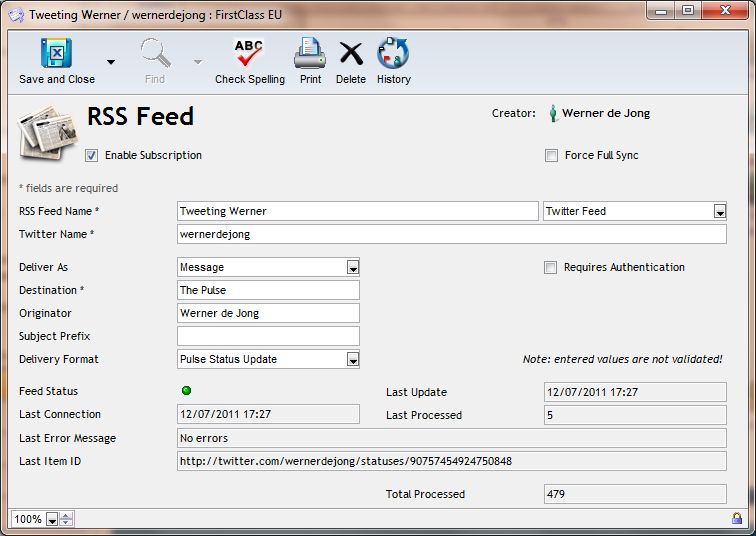 With the arrival of the all new RSS Feeder application, we now have a native solution available. With this tool, the System Administrator or OTSW Custodian can setup any number of RSS feeds, which are delivered as messages, documents or wikis to a community, conference or mailbox. The application can also deliver RSS feeds to external email addresses, which means that the RSS Feeder is a feed-to-email service by itself.