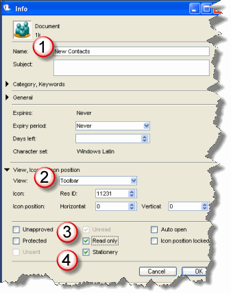 - Use the same text in both the Name and Title fields. The Name field is used in the list view within Designer and the Title field is used in FirstClass menus (either the Admin > New Stationery or New > New Document/Message Special Menus)
