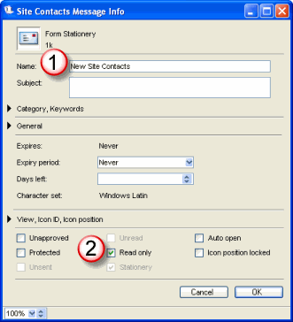 Tip: If you are creating a Stationery Message, set the attributes of the To: field to Protectable only.