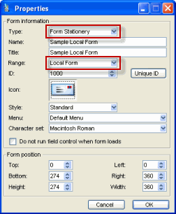 If you choose Local Form, or Registered form, then you will be creating a message. Since this message is going to be designed specifically for a single purpose and not be used for any other purpose other than to post to your conference, the message should also be designated as a Stationery document