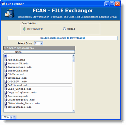 fcasFileExchanger.mdb - this is the source code so store it in your FCAS\FCRAD\Source folder and you will be able to run this and compile it on your system.