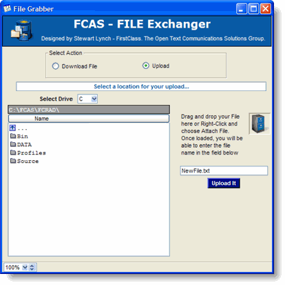 This little utility called FCAS File Exchanger that allows you to upload any file to any location on the FCAS computer and to download any file from that computer.