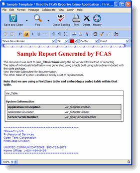 The FCASReporting.mdb file is the source code that will make use of these template files and I have documented the source code so that you can see how you can use server files to build reporting templates.