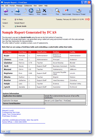 If you are interested in how you can create nicely formatted reports and have them sent as emails you can take a look at the sample files and code that are available here.