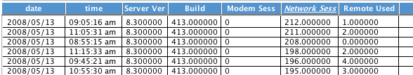 Control form, you can monitor your session activity. Columns will sort numerically so you can find the most active times of the day.