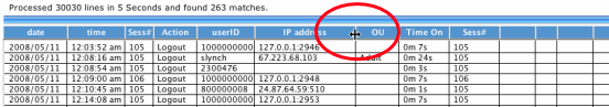 The FirstClass Log Search application is not a Log Analyzer, but rather a Log Searching tool. You can download your Statistic Log files to a local file folder and use the Log Search Application to locate specific events based on your search criteria. |